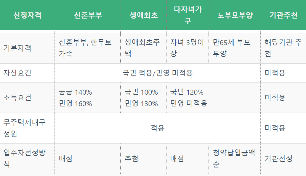 - 소득기준 (국민주택은 130%이하, 민영주택은 160%이하)