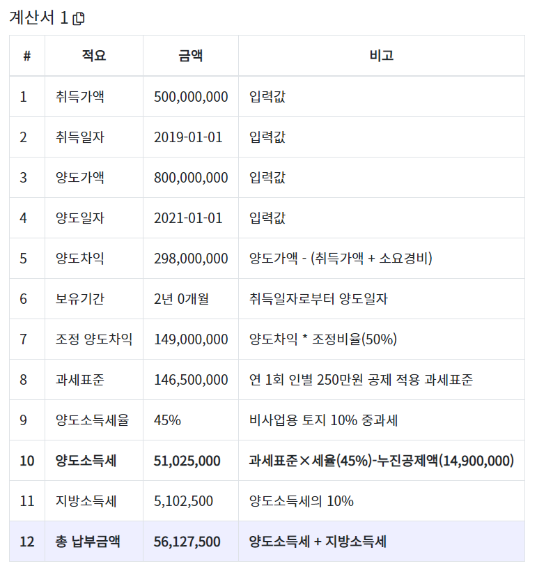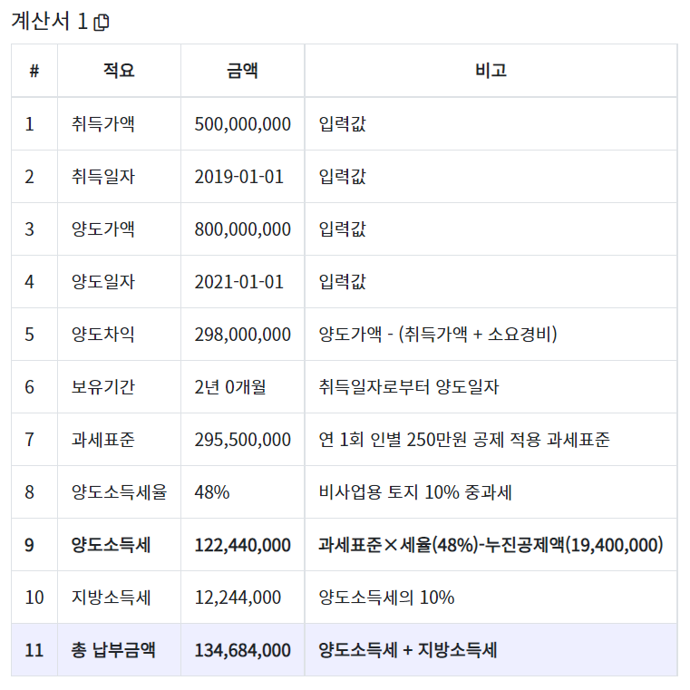 - 최종납부금액 = 양도소득세 + 지방소득세