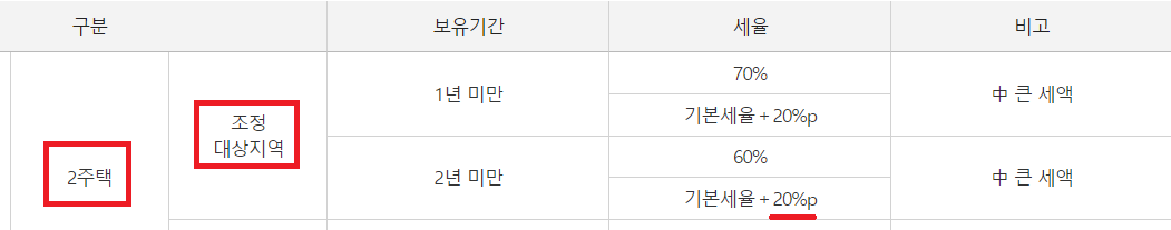 - 최종 양도세율 = 38% + 20%(2주택자 조정지역 가산 적용), 누진공제 1,940만원