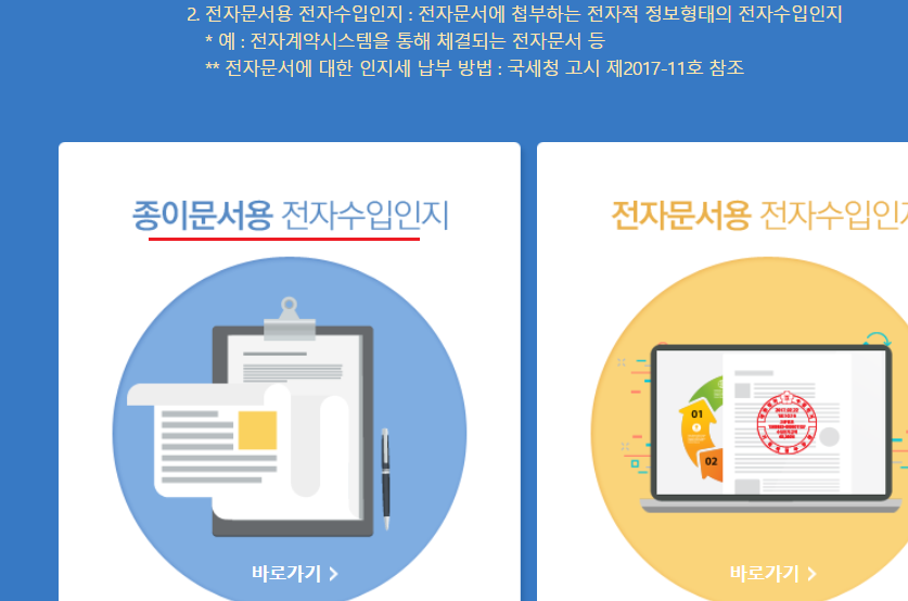 2) 그리고 '종이문서용 전자 수입인지'를 누릅니다.