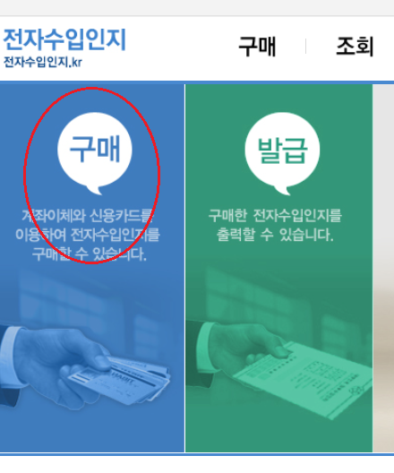 1) 전자 수입인지 홈페이지로 들어갑니다.
