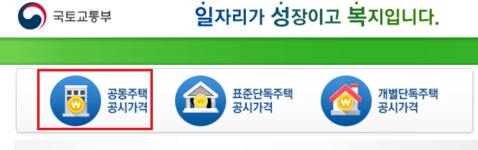 아파트의 경우 아래 공동주택 공시가격을 눌러서 확인해 주세요.