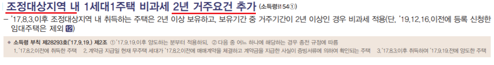 1. 조정대상지역, 1세대 1주택인경우 2년 거주를 해야함
