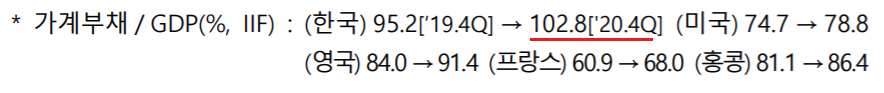 가계부채 / GDP 비율을 살펴보면