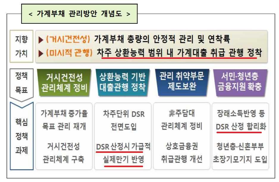 DSR에 대한 관리를 강화하여 부동산 투자를 규제한다는 내용입니다.
