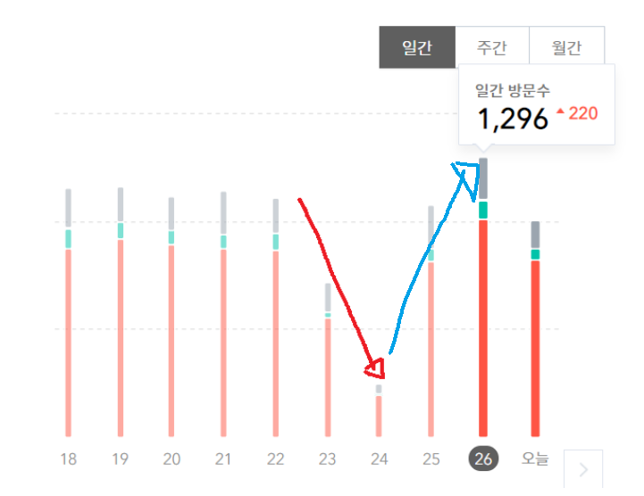 이러한 갑작스러운 유입감소는 블로그 운영가운데 한번은 있다고 합니다.