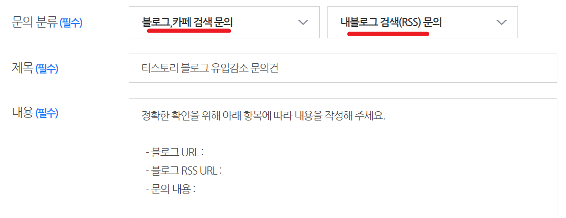 2) 아래와 같이 자신의 블로그 주소를 기입합니다.