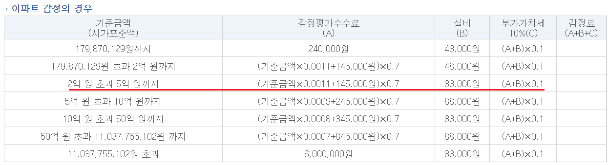 - 감정평가수수료 = (기준금액 × 0.0011 + 145,000원) × 0.7