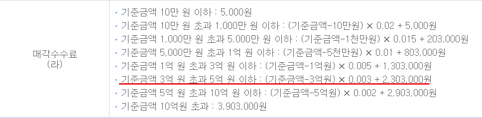 8) 매각수수료 = (기준금액 - 3억원) x 0.003 + 2,303,000원
