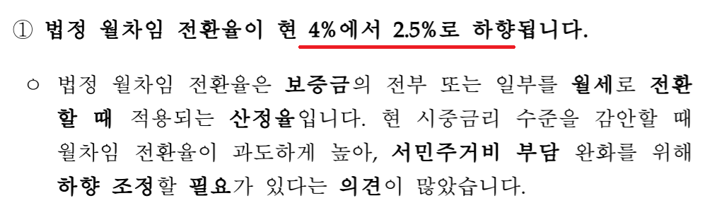 1) 전월세전환율을 4%에서 2.5%로 하향 변경