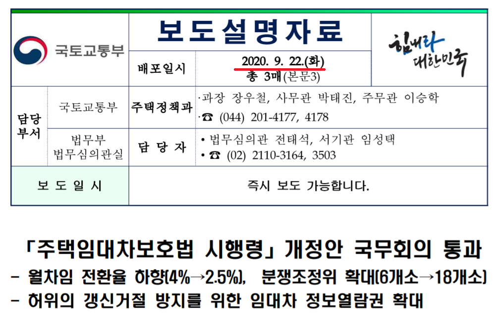 1. 주택임대차보호법 개정안 정리 (2020년 9월 22일 배포)