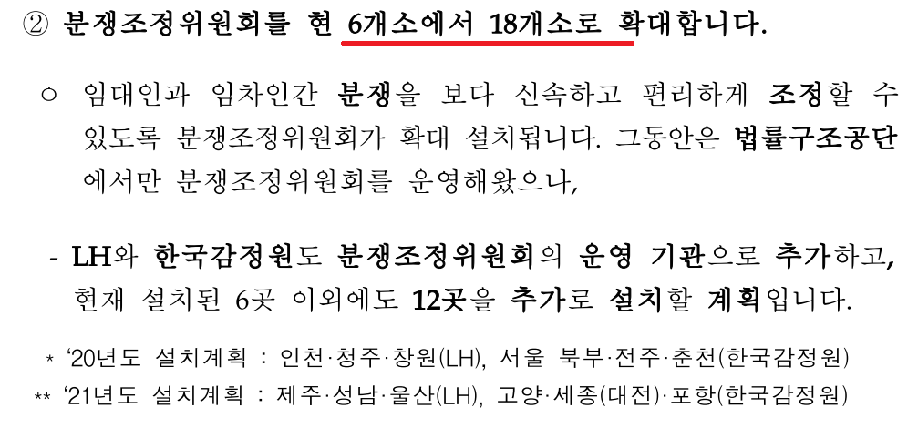 2) 분쟁조정위원회를 6개소에서 18개소로 확대