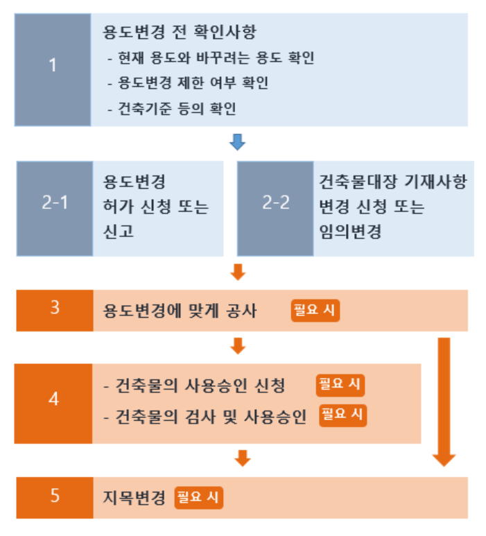 그렇다면 지금부터 용도변경의 절차에 대해서 알아 보도록 하겠습니다.