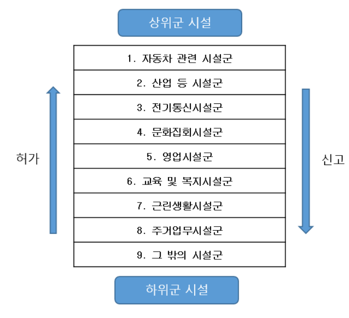 예를 단독주택 8번에서 근린생활시설 7번으로 번경하고자 할 경우에는 허가를 해야합니다.