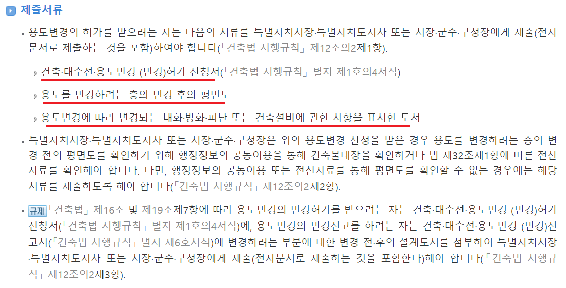 용도변경을 위한 제출 서류는 아래와 같습니다.