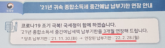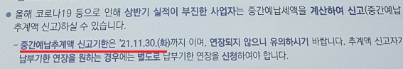 원래 중간예납의 납부기한은 2021년 11월 30일까지 입니다.