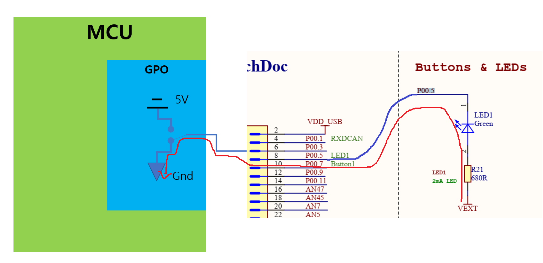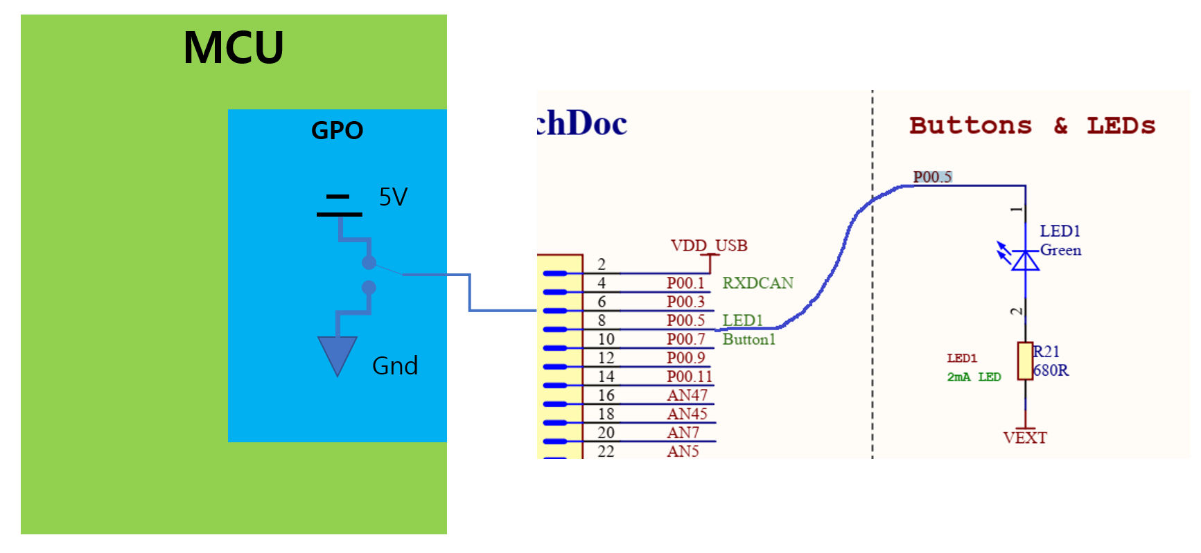 아래와 같이 MCU안에 GPO가 5V로 되어져 있는 경우