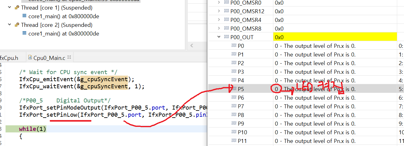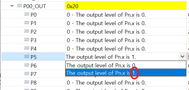 3) 아래와 같이 P00.5 포트를 GPO로 설정하고
