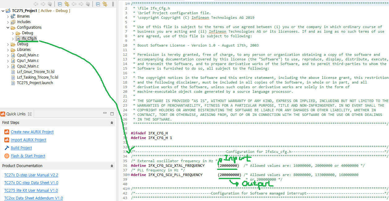 오늘은 TC275의 Clock을 설정을 확인하고 직접 보드에서 Test해 보는 시간을 가져 보도록 하겠습니다.