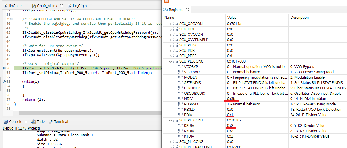 이제 TC275에 달린 20MHz의 외부 Clock을 어떻게 200MHz의 Clock으로 높이려고합니다.