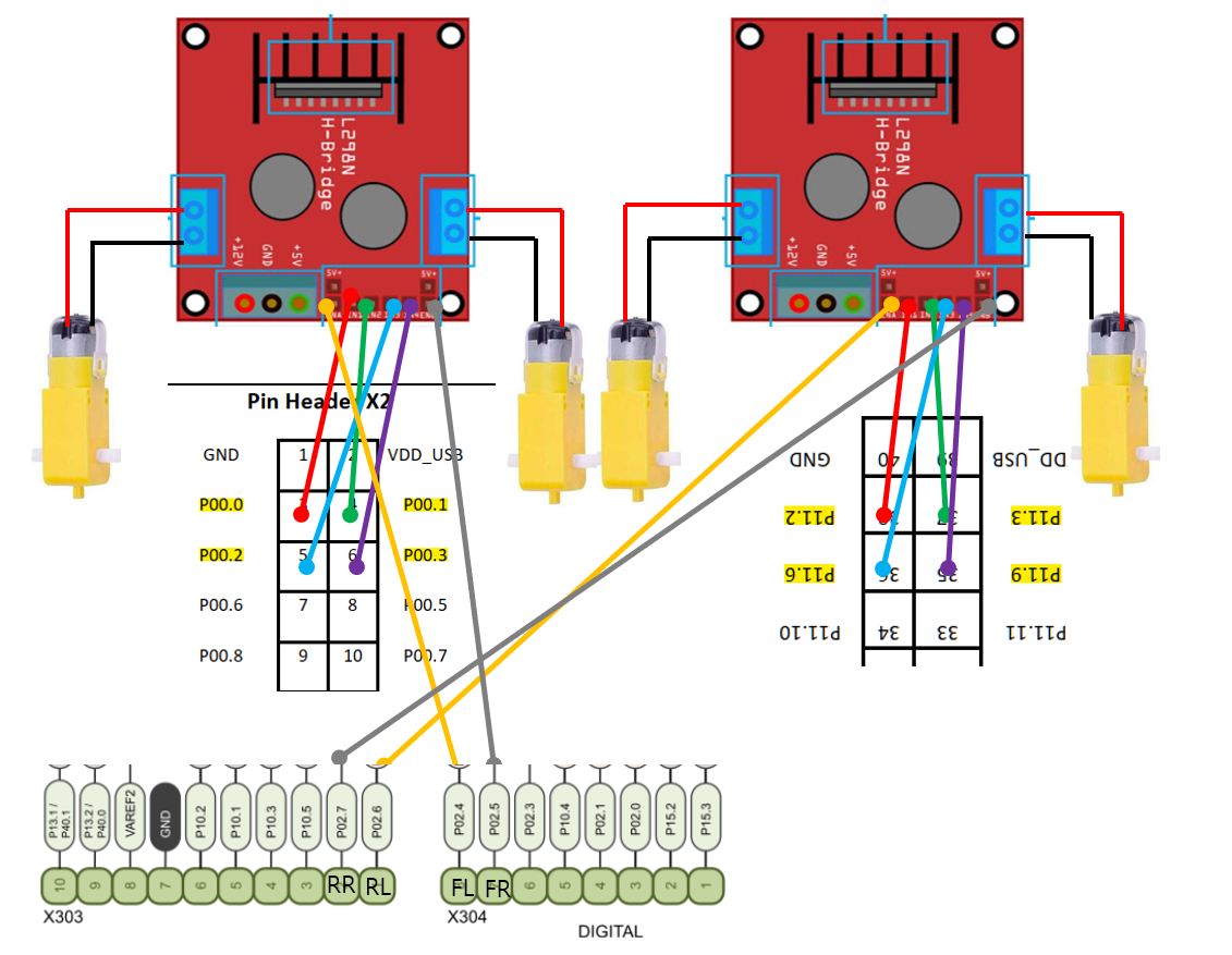 회색 (Enable B) : 오른쪽 바퀴를 동작시키는 MCU의 PWM이 들어가는 부분입니다.