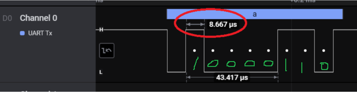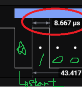 그리고 하나의 비트를 표현하는 시간(전압을 유지하는 시간)은 8.667us로 약속하였습니다.