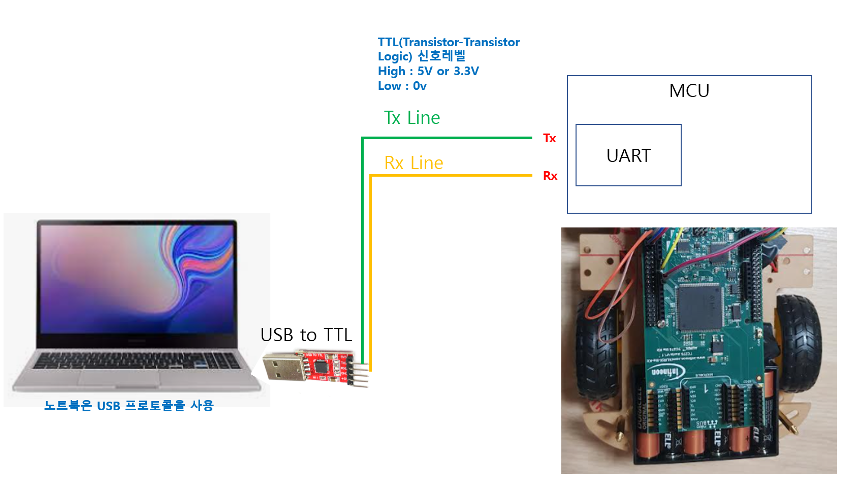 위의 프로토콜은 바로 UART 프로토콜을 설명한 것입니다.