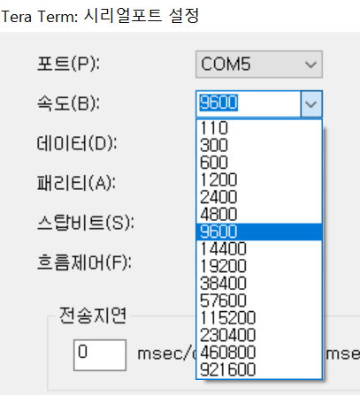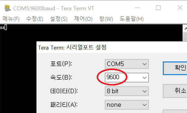TeraTerm의 시리얼포트 속도도 9600으로 설정해야 겠지요?