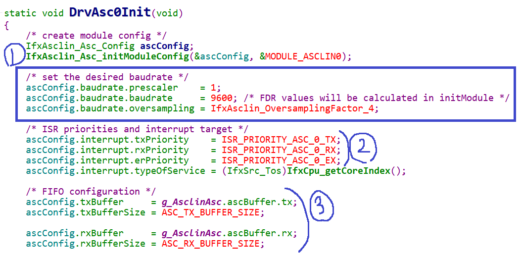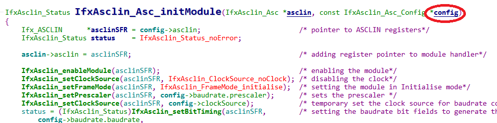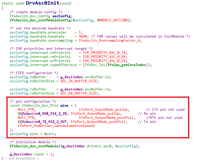 예를들어서, 아래와 같이 UART 초기화하는 iLLD SW를 이용하면