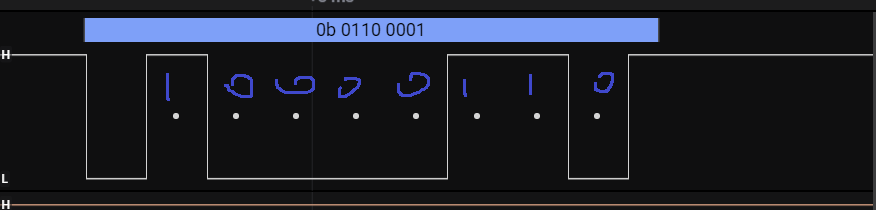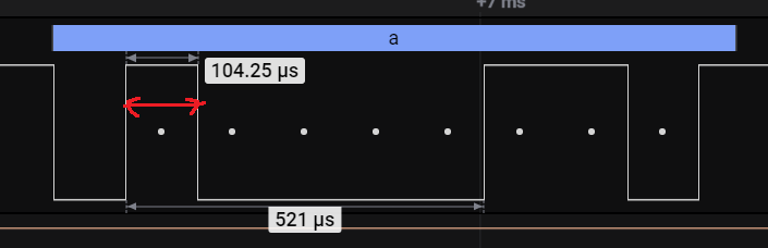 아래와 같이 1개의 비트를 1로 표현하기 위하여 전압을 올리는데, 104us가 걸리는 것을 알수 있습니다.