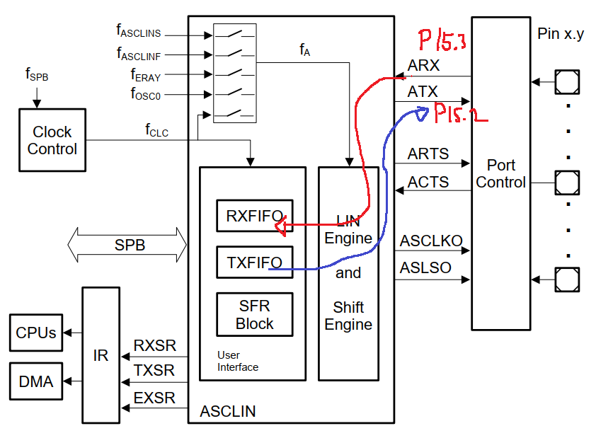 아래는 ASCLIN 모듈의 Block Diagram을 나타내고 있습니다.