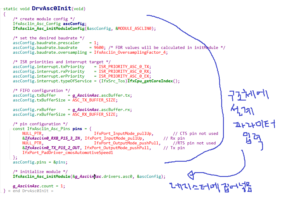 오늘은 인피니언 MCU UART Driver Code를 조금더