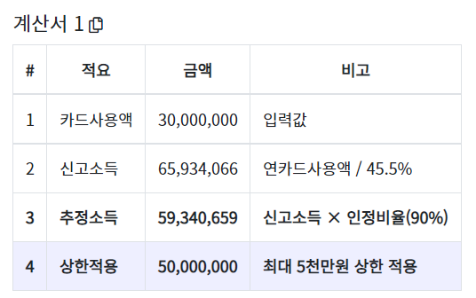 2) 카드사용 금액으로 추정소득 계산 방법 정리