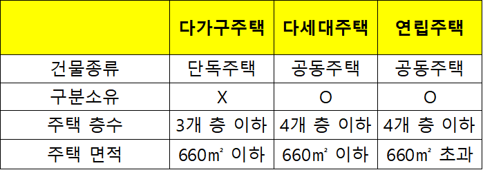 그렇다면 다가구주택, 다세대주택, 연립주택의 차이점에 대해서 알아보도록 하겠습니다.