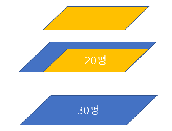 단독주택을 지을때, 아래와 같이 1층은 30평,