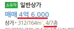 상가매도금액 : 6억