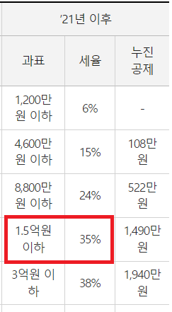 - 양도소득세율 : 35% (누진공제 1,490만원)