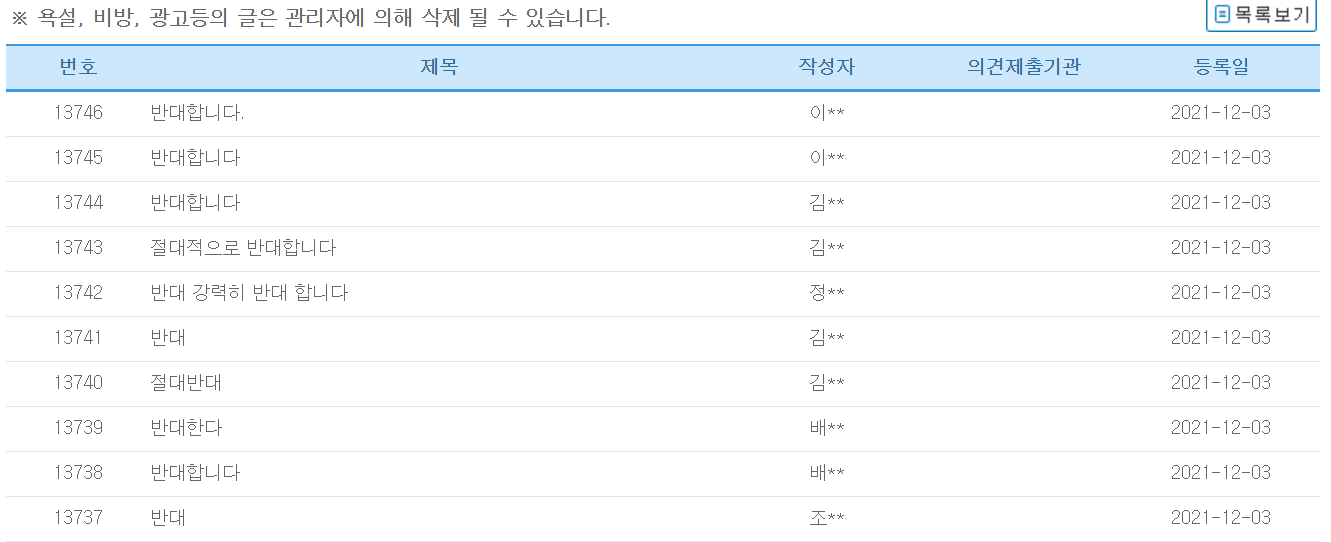 위의 입법사이트에서 의견을 제시한 분들은 아래와 같이 반대하는 의견이 많이 있습니다.