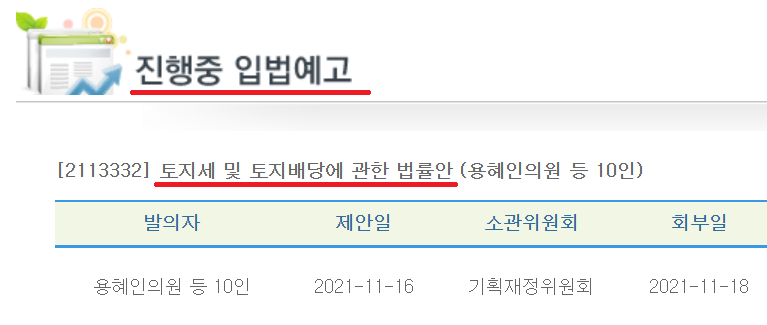 오늘은 현재 국회 입법예고에 진행되고 있는 법안인