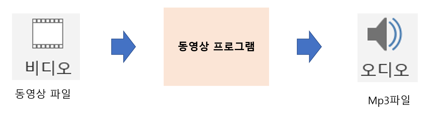 아래와 같은 방법으로 동영상이 오디오로 변환을 수행하게 됩니다.