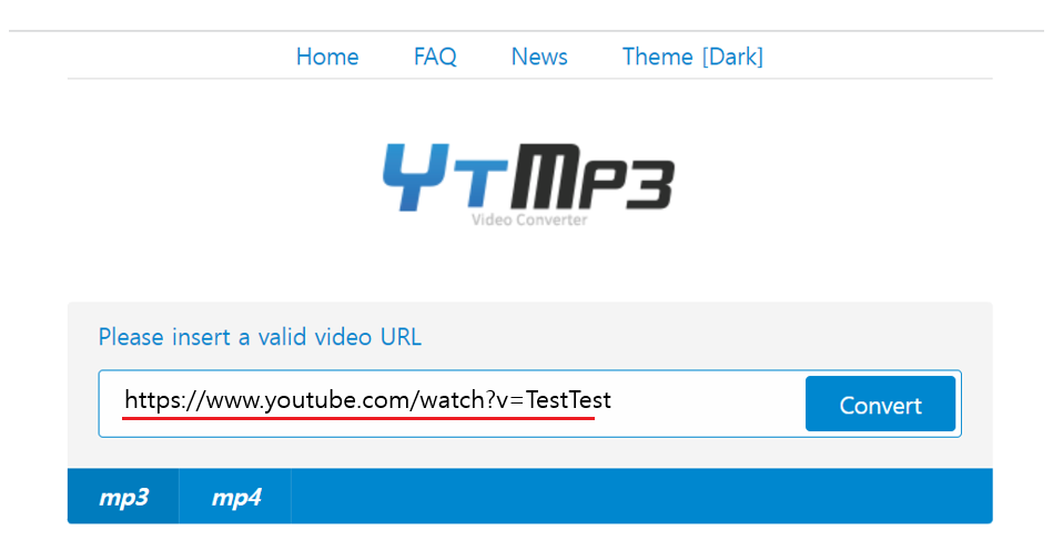 2) 사이트에 들어가셔서 원하는 유튜브 Link를 아래와 같이 입력합니다.