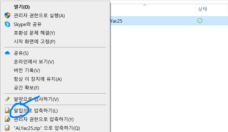 3) 이제 원하는 파일을 우클릭하여 알집으로 압축을 하면 됩니다.