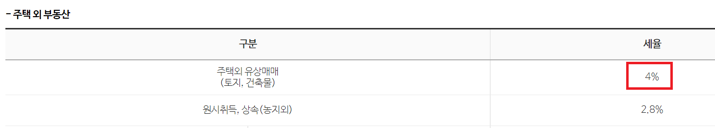 주택 외 부동산의 취득세는 4%인데, 농어촌특별세 0.2%와 지방교육세 0.4%가 추가되어서