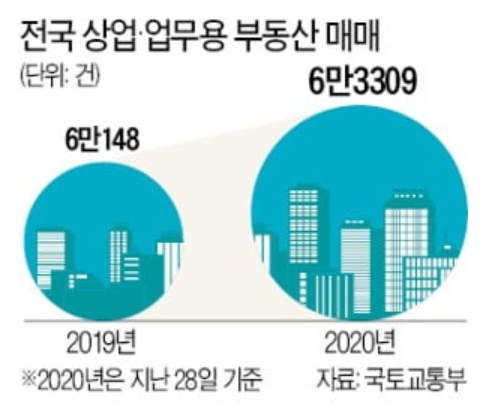 요즘, 정부의 주택에 대한 부동산 규제로, 상업, 업무용 부동산 매매가 증가하고 있습니다.