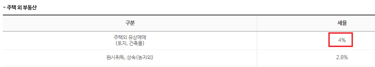 아래에서 주택 외 부동산의 취득세는 4%인것을 확인하실 수 있습니다.