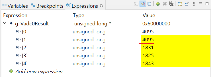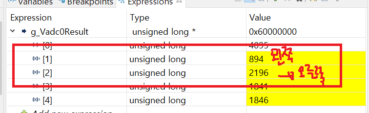 지금은 3.3V일때 12비트가 꽉찬 4095가 나오는 것을 알 수 있습니다.