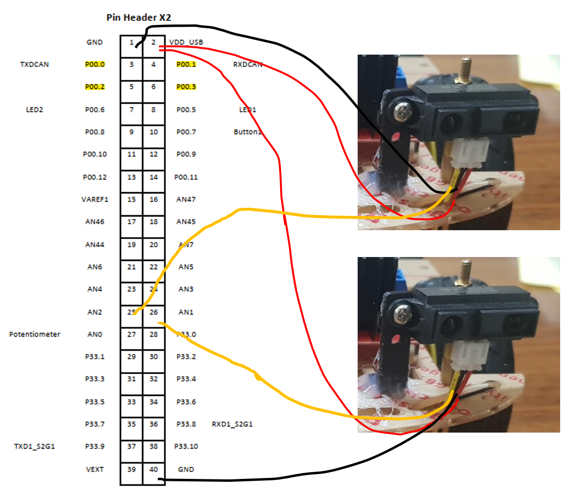 저는 AN1, AN2번을 적외선센서 2개의 Output Voltage와 연결시킬 것입니다.