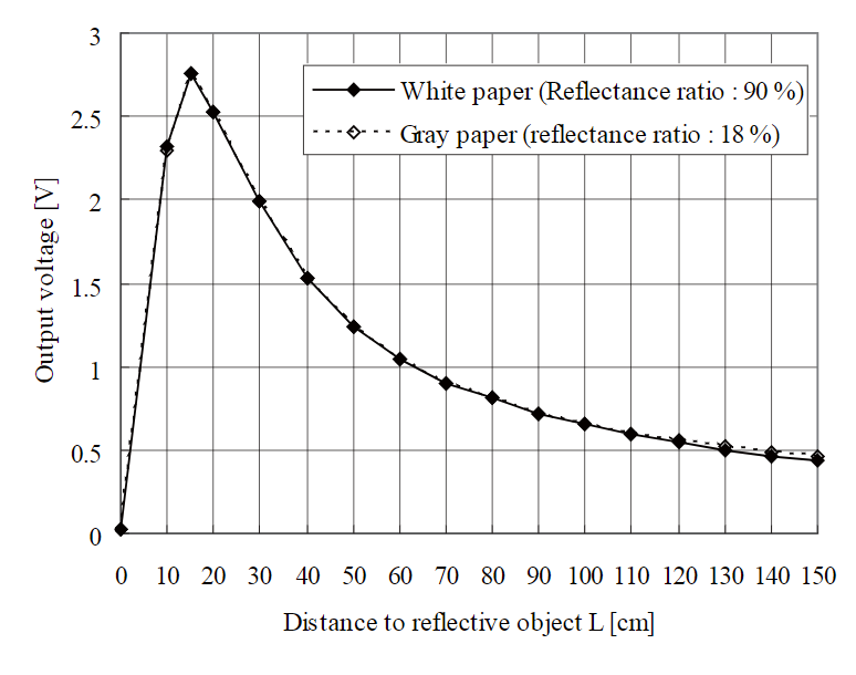 거리에 따라서 Vout을 통해 전압이 다르게 측정이 되게 됩니다.