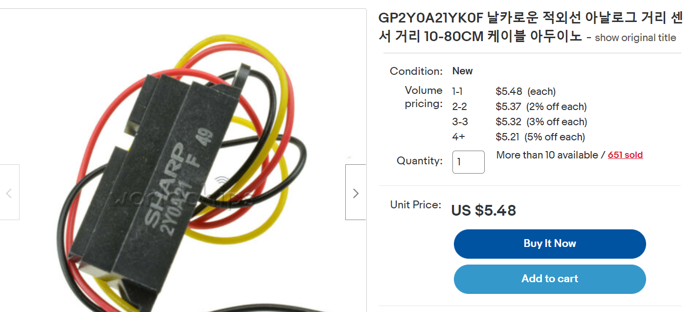 우리가 사용하게될 GP2Y0A21YK 적외선 센서의