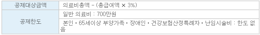 의료비가 총 급여액의 3%를 초과했을 때 공제가 됩니다.